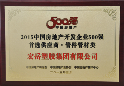 3月24日,来自全国各地的房地产产业链品牌企业代表齐聚北京国贸大酒店,共同见证“2015中国房地产开发企业500强及首选供应商品牌”的诞生。会上发布的《2015中国房地产开发企业500强首选供应商品牌测评报告》公布了房地产部品20个大类的10强品牌,完美塑胶集团凭借雄厚的实力、良好的口碑和过硬的品质再次蝉联“中国房地产开发企业500强管件管材类首选供应商”!