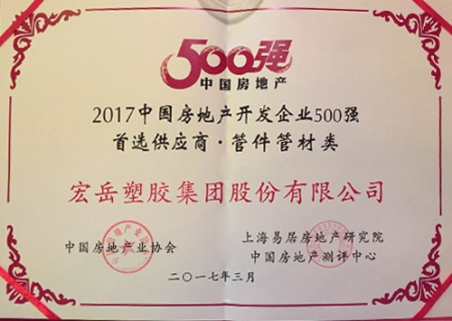 完美荣获“2017年中国房地产开发企业500强首选供应商品牌”