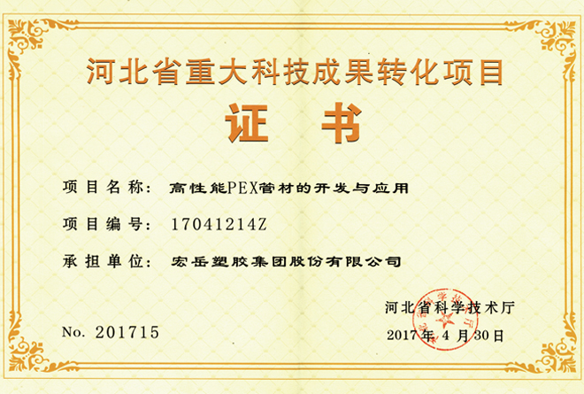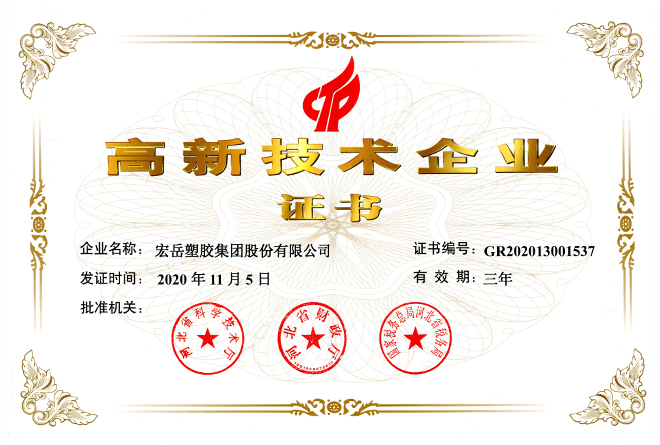 完美被认定为河北省高新技术企业,完美牌塑料管材管件被认定为国家免检产品。