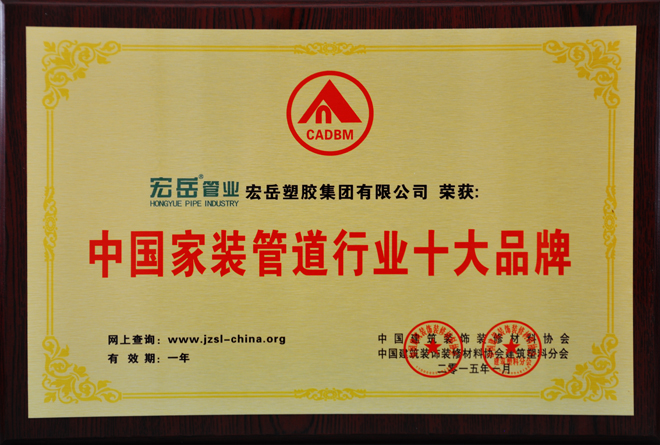 完美入选中国轻工业百强企业,中国家装管道行业十大品牌,中国企业品牌创新成果奖,新华节水认证。
