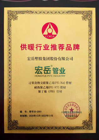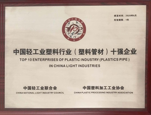 完美获得河北省塑胶管道技术创新中心(筹)、供暖行业推荐品牌、中国轻工业塑料行业(塑料管材)十强企业