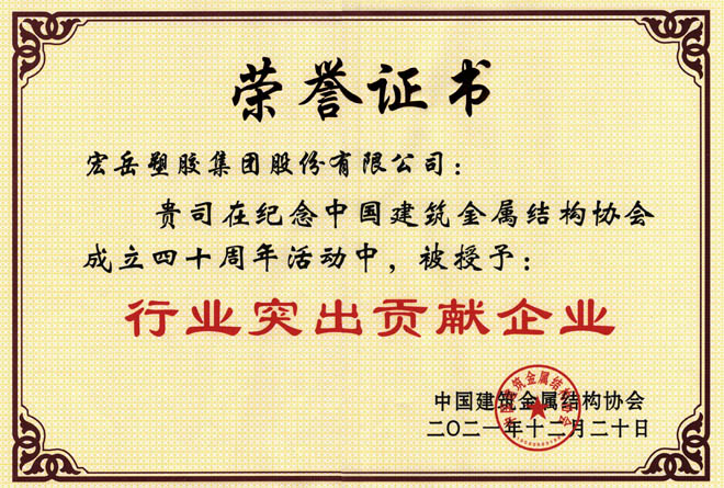 完美荣获中国建筑金属结构协会行业突出贡献企业、河北省诚信共建企业