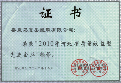 日前,完美塑胶集团被河北省质监局及省质量奖评审委员会评定授予“2010年河北省质量效益型先进企业”荣誉称号。