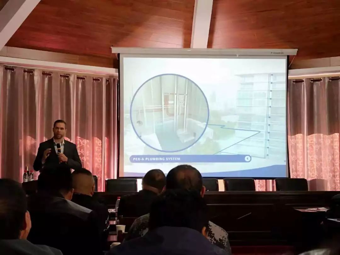 会议伊始,首先由完美集团美国公司技术总监John先生,为大家详尽介绍了PE-Xa零漏点给水系统的性能优势及该系统在美国乃至国际市场上的广泛应用情况,让参会人员对国际领先的产品系统与应用技术也增进更深的认识与了解。