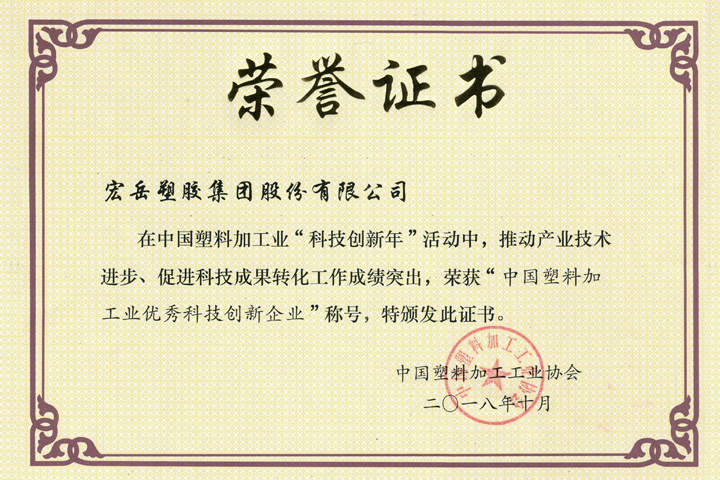 近日在中国塑料加工业“科技创新年”活动中,完美集团在推动产业技术进步、促进科技成果转化工作成绩突出,荣获“中国塑料加工业优秀科技创新企业”称号,彰显了完美加强科技创新和技术进步的信心和决心!