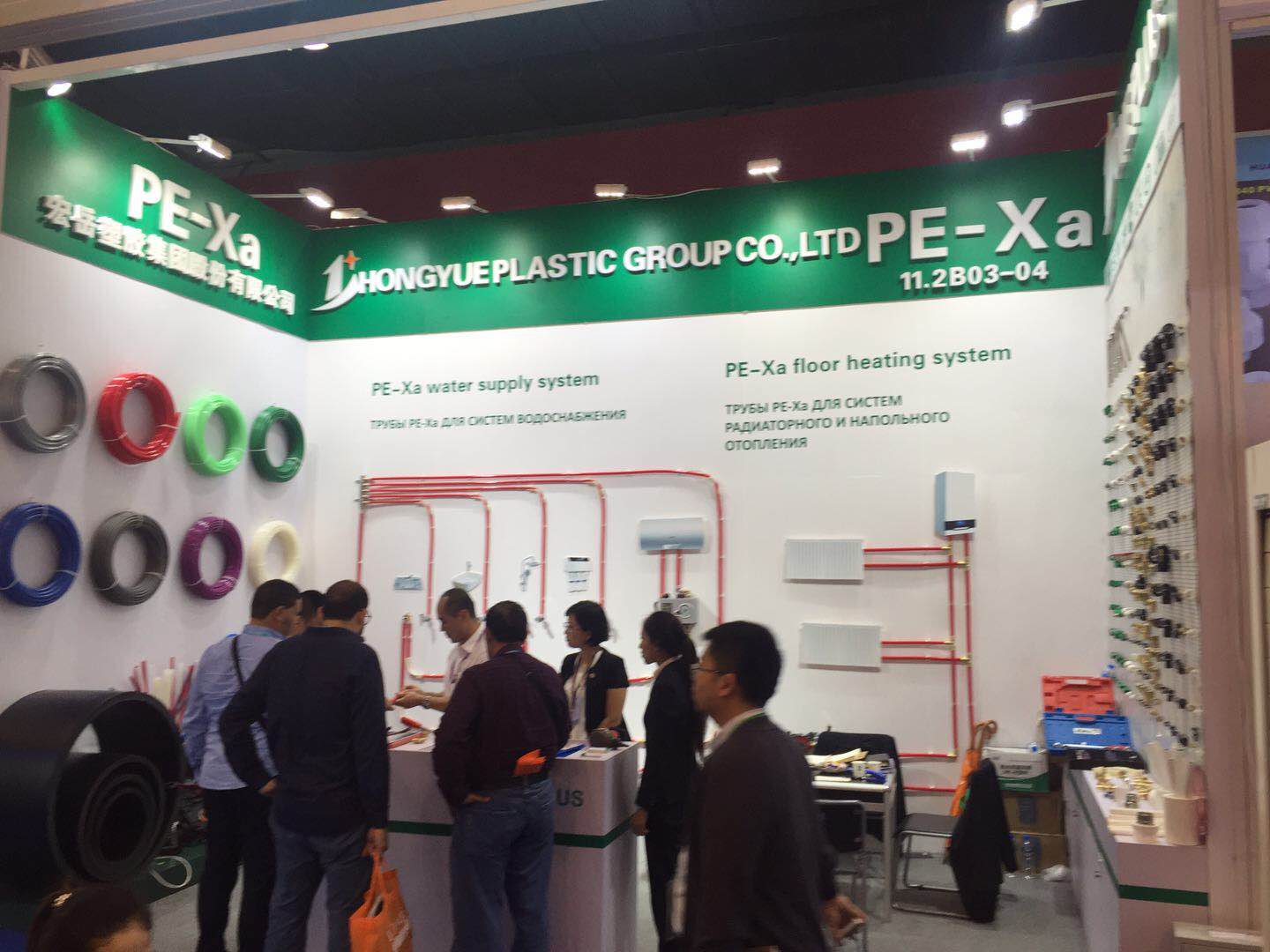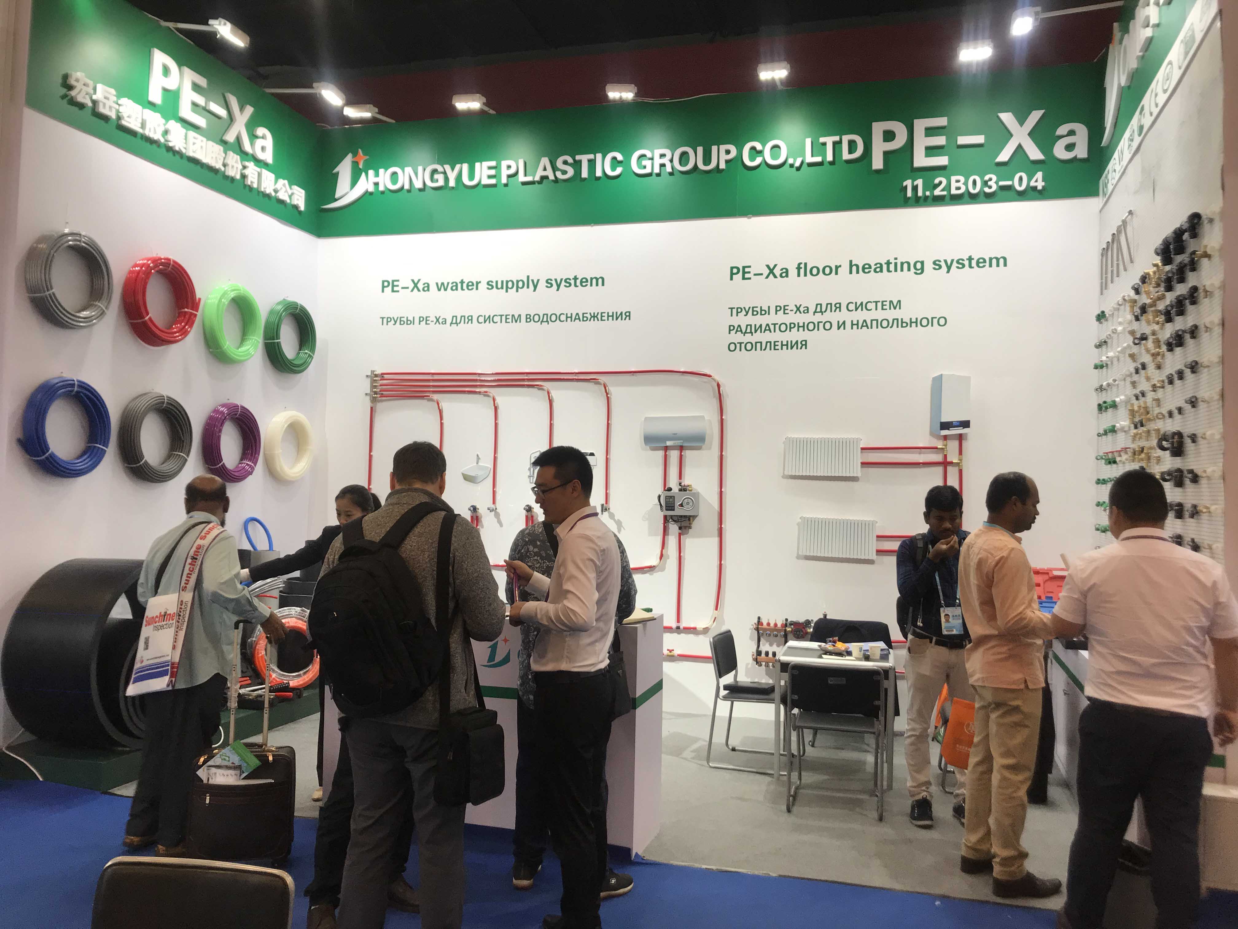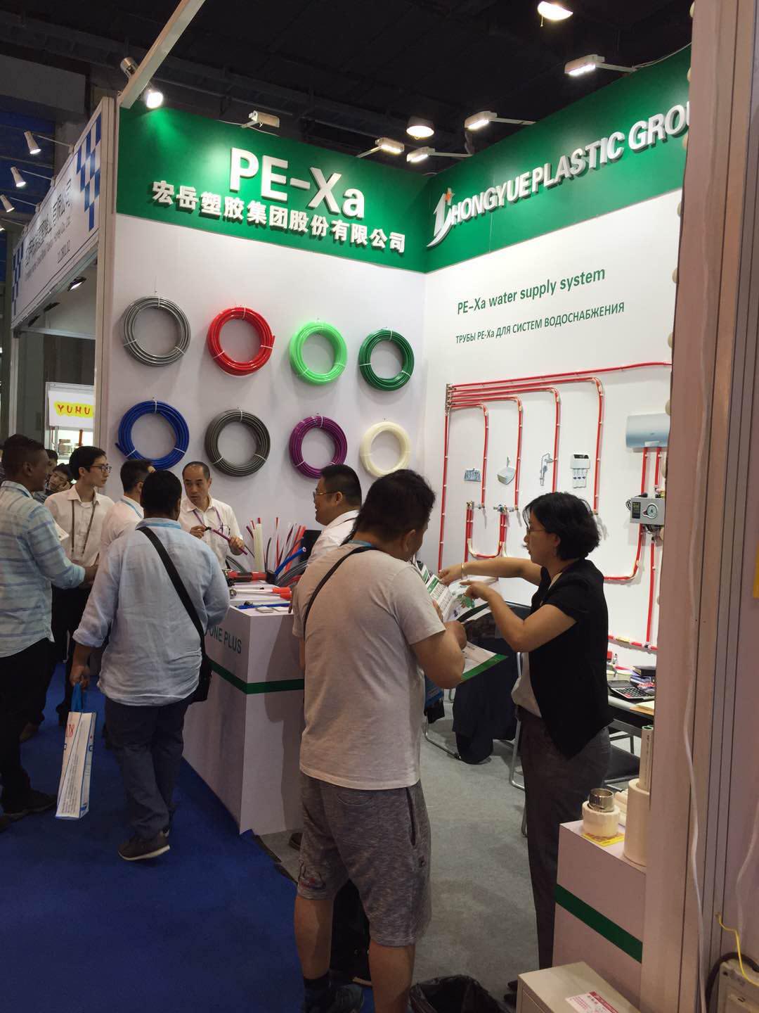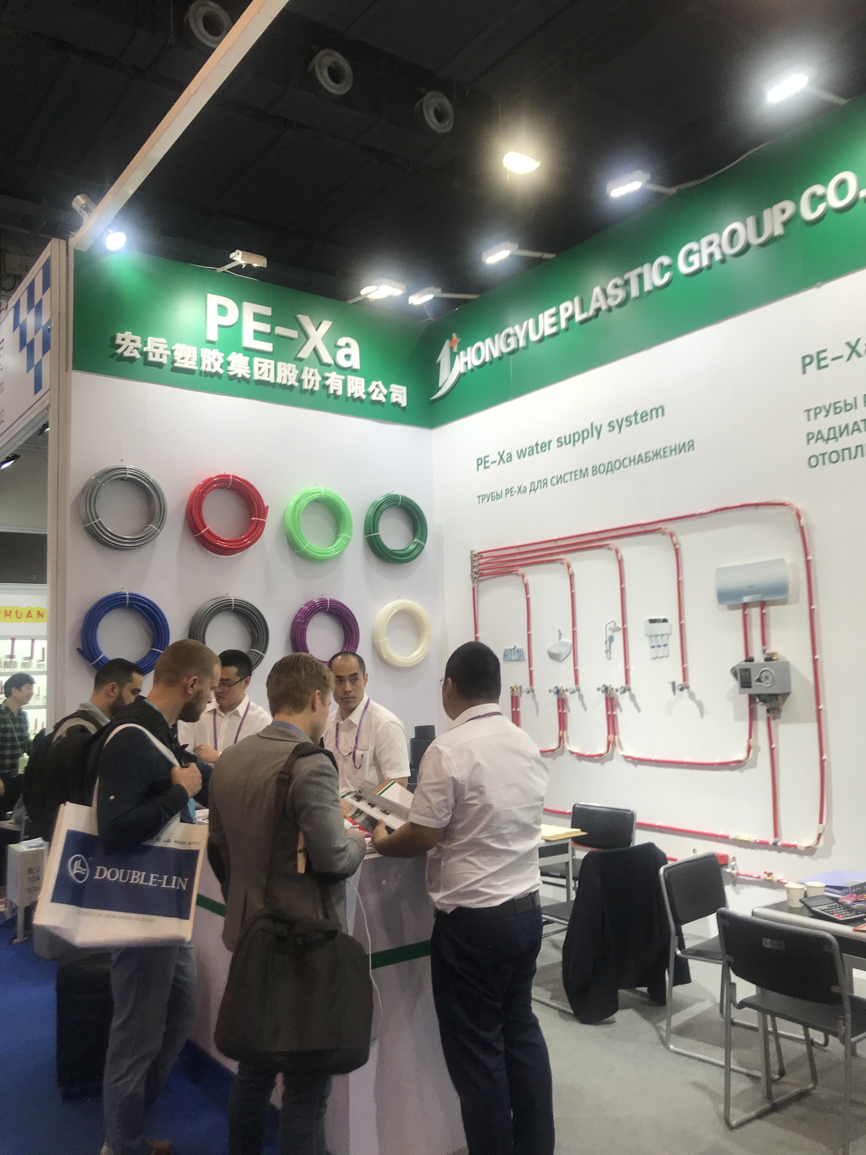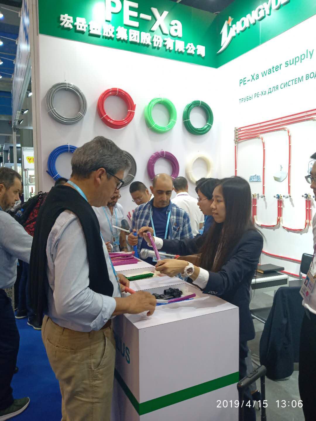 完美展位前人潮攒动,络绎不绝,来自世界各国的采购商对完美参展产品表现出了浓厚的兴趣,纷纷驻足了解完美产品,最吸引各国客商目光的是PE-Xa给水系统。