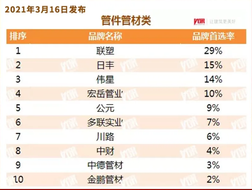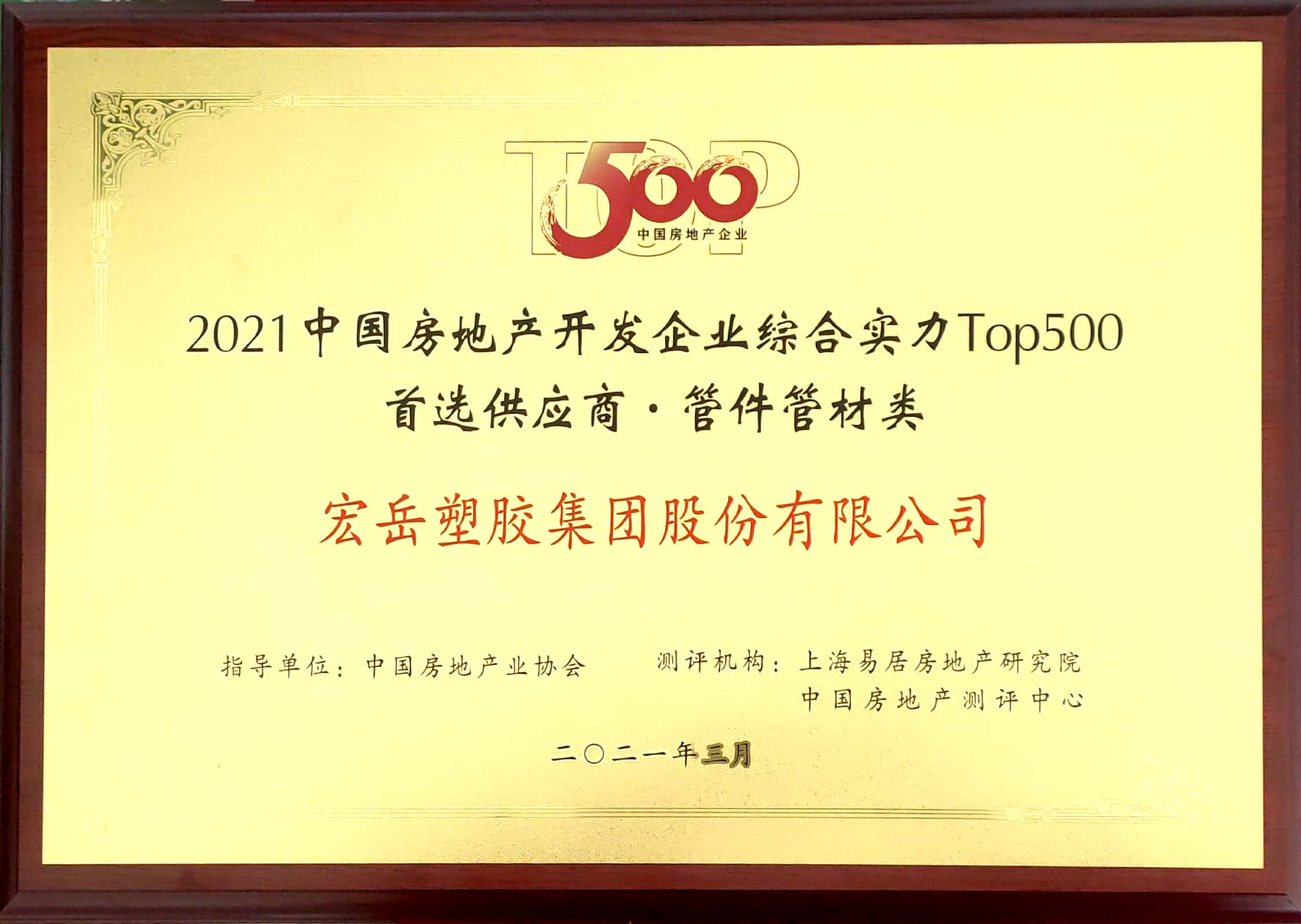 完美塑胶集团2014-2021连续8年蝉联中国房地产500强首选供应商品牌,品牌首选率荣登前五。