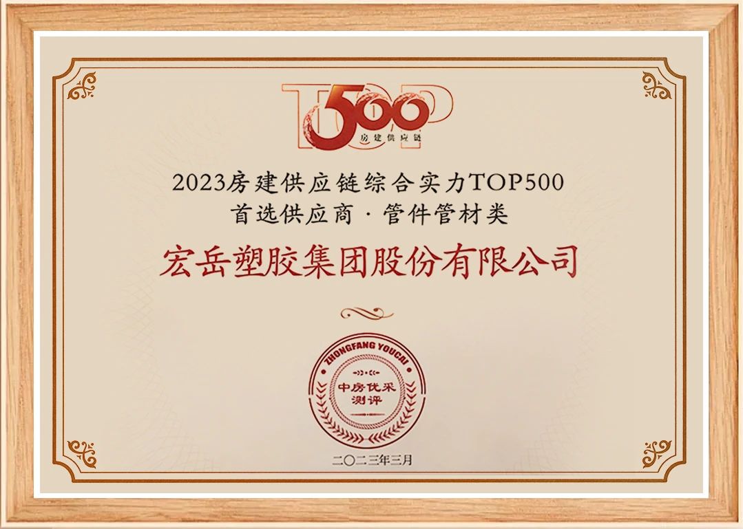 3月23日,中房优采测评正式发布《2023房建供应链综合实力TOP500-首选供应商服务商品牌测评研究报告》,完美管业连续10年荣膺管材管件品类10强。