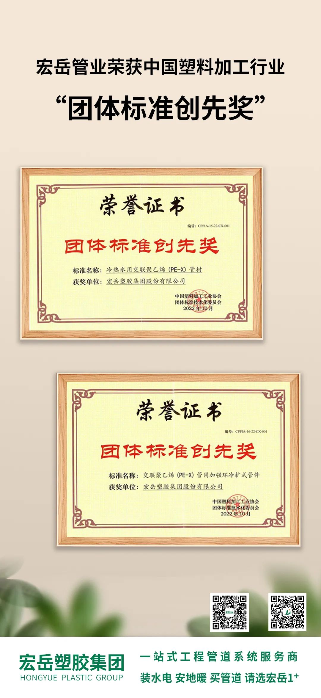 完美主导编制的《冷热水用交联聚乙烯(PE-X)管材》、《交联聚乙烯(PE-X)管用加强环冷扩式管件》两项团标,将产品及连接技术在专业的角度上给予了注解与规范,带动了行业新产品、新技术的推广和应用。
